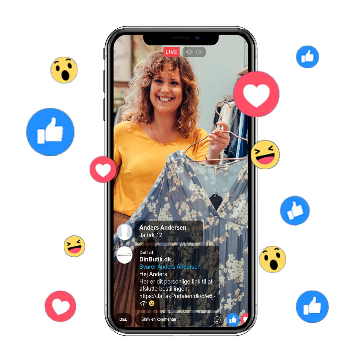 - Imens du er live, kan dit publikum undervejs, og synligt for dig, reagerer på dit indhold og bestille dine varer ved at kommentere Ja tak.